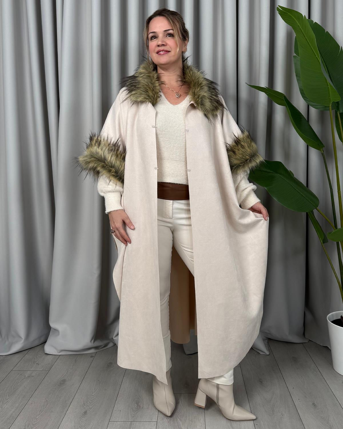 Mabel Kürk Detaylı Panço Ekru (fundakecicistok000000000389)
