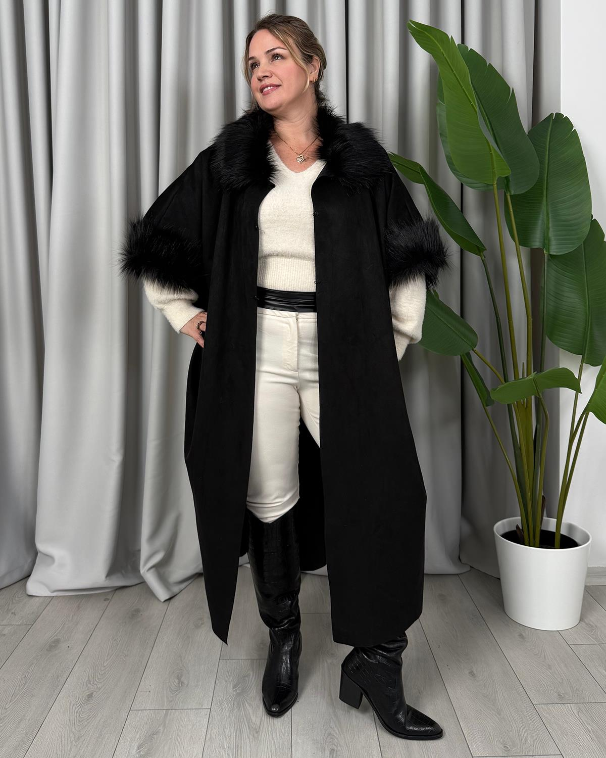 Mabel Kürk Detaylı Panço Siyah (fundakecicistok000000000390)
