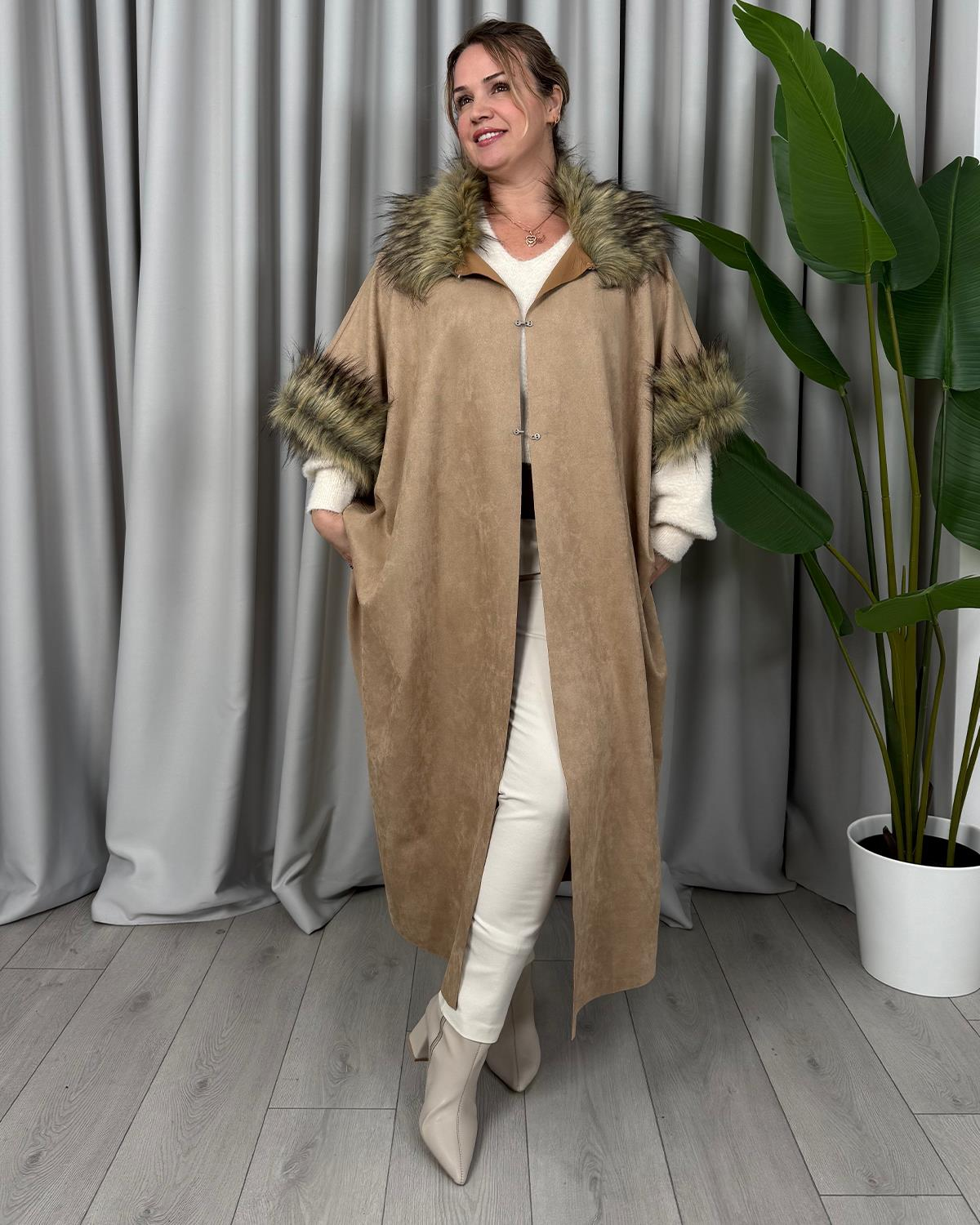 Mabel Kürk Detaylı Panço Vizon (fundakecicistok000000000388)