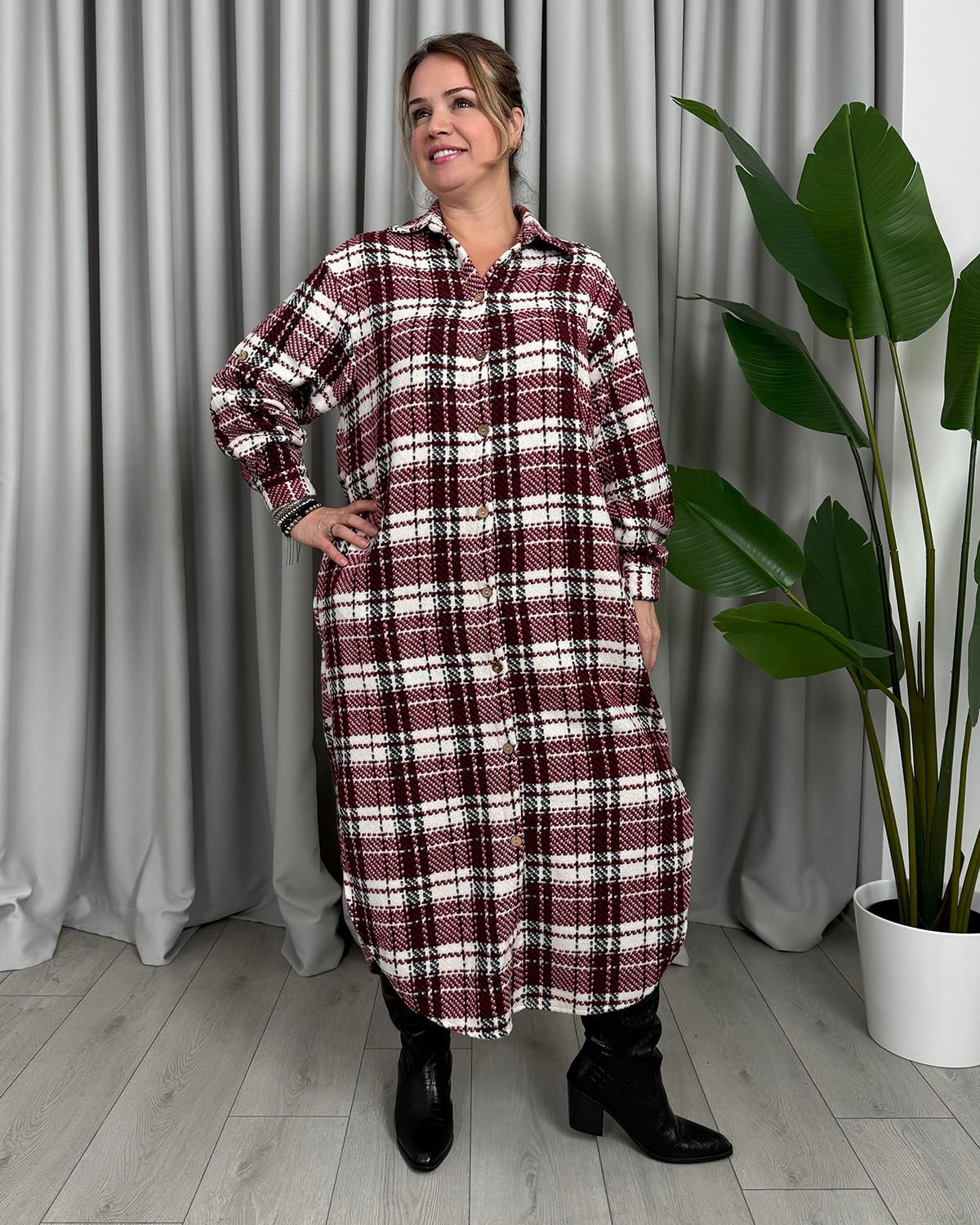 Sendigo Gömlek Elbise Bordo Beyaz